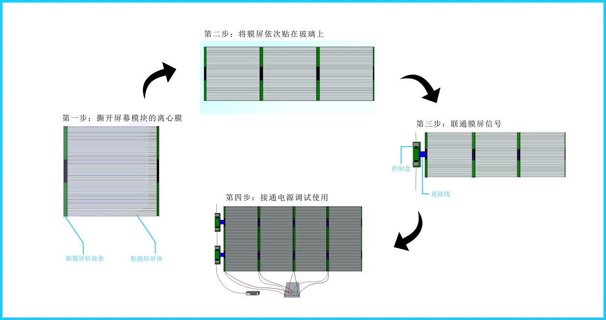 led顯示屏的高端產品。輕、薄、透明、安裝簡單是顯示屏的大趨勢,迷你光電研發(fā)出品的貼膜屏,致力于滿足全球LED貼膜的需求,采用我司特定裸芯片,將元器件固裝在高透的PCB板材上,通過特有的蓋膠工藝,使顯示模塊整合成一款厚度最小是1~3mm的高透可發(fā)光顯示的高透光學透鏡式基板。